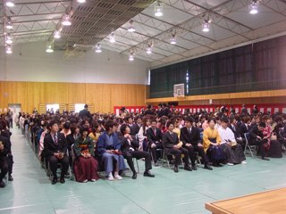 | 卒業式前の様子 | 鳶先生が建築学科卒業生の名を読み上げる |