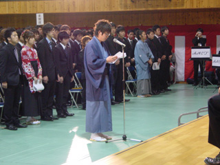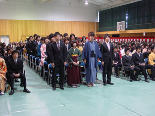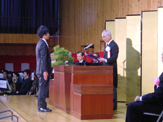 | 卒業証書授与を控える5年生 | 安田君が学科代表として卒業証書を受け取る |