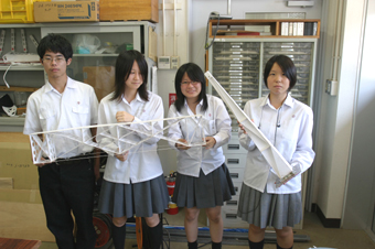 | 1/2スケールの模型を作って確認 | 5年生は試作を作って耐力を計測 |