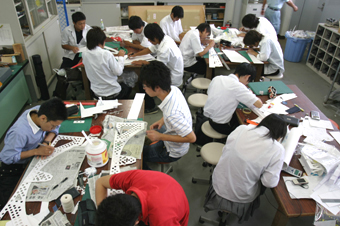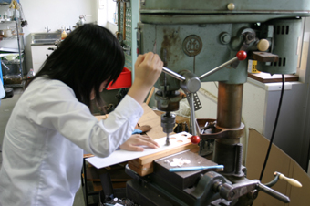| ブリッジの製作の様子 | 女子学生も旋盤を使えます! |