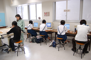 | CADを体験する中学生たち | 木造建築や継手についての説明 |
