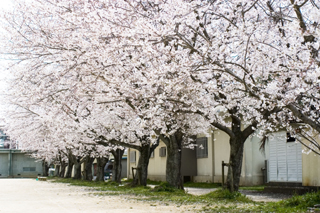 晴れ渡る空,満開の桜のもと,学生たちは新たな出発点に立ちました. これからの学生生活が充実したものになることを期待しています.