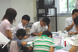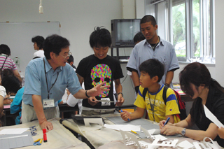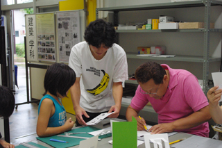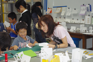 | 親子で折り紙建築に挑戦 | 先生も指導に熱が入ります |