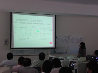 学外の企業で,実際の仕事を体験をするものです. 6名が学生が,それぞれの実習先で,体験してきたこと, そして,その体験を通じて学んだことなどを発表してくれました. また,夏季休業中の発表会でしたが,来年度専攻科に進学する5年生も発表を聞きに来てくれていました. 以下,発表会の様子を写真で紹介します. |