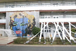 「Think Globally ・ Act Locally 〜今から始めよう,未来の為に〜」でした. 建築学科では「ECO」をテーマに夏休み前から5年生が中心となって高専祭の準備に取り組みました. 建築棟前の広場にはフリーマーケット,,土壁製作,空き缶アートやペットボトルアーチ, 廃材を利用した手作りのベンチやバザーなどで,高専祭を見に来られた人たちを楽しませていました. ご来場頂いた皆様ありがとうございました. 以下,高専祭(建築学科)の様子を写真で紹介します. |