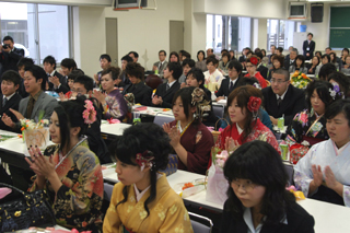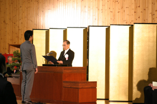| 河野君が学科代表として卒業証書を受け取る | 修了証書授与を受ける専攻科生 |