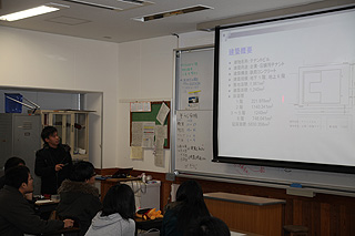 (構造設計演習は12/8に行ないました). 卒業設計では,現代社会が抱える問題にどの程度切り込んできるかという課題性とともに, その課題解決のために提案された内容と空間構成の独創性と創造性および作品の完成度が問われます. 設備設計演習では,これまで学んだ空調調和設備の知識を用いて,独自の建物を設計し, その建物を対象として設備設計を行い,計算書を作成しました. 学生はこれらの結果について考察し発表を行いました. 構造設計演習では,これまで学んだ専門知識を総合・活用して鉄筋コンクリート構造と鋼構造, それぞれの構造種別において建物の構造計算を行い,計算書を作成しました. 学生はこれらの結果について考察し発表を行いました. 発表会には4年生も見学に来ました.以下は,各発表会の様子です. |
