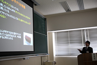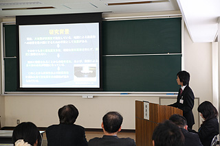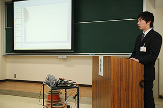 概ね学生たちはしっかりと発表・質問への回答をしていました. このような卒業研究に取り組むことで,論理的思考能力や問題解決能力など多くのことが 学生たちに備わってきたと思います. 学生たちには,これまでの経験を今後社会で活かしていって欲しいと思います. 以下は,発表会の様子です. |