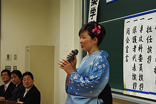 | 1年次担任の濱田先生から挨拶 | 3年次担任の上原先生から挨拶 |