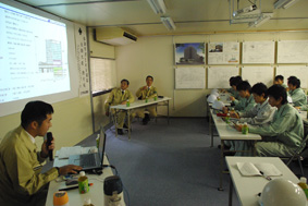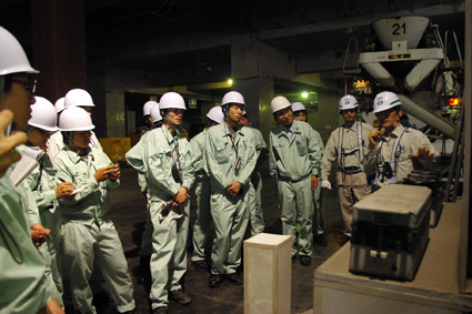 ができる貴重な機会。学生たちは熱心に施工現場の見学をする一方,所員の方々