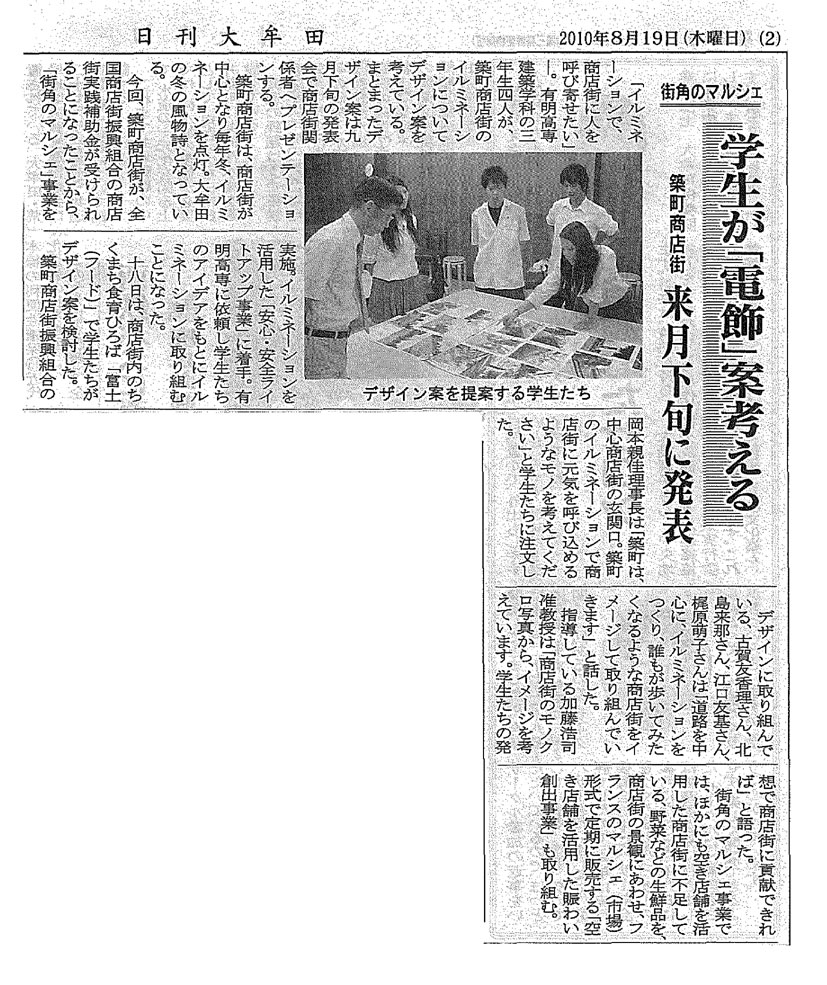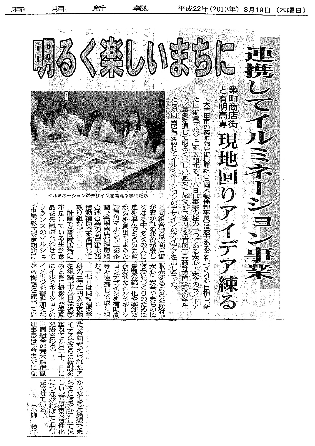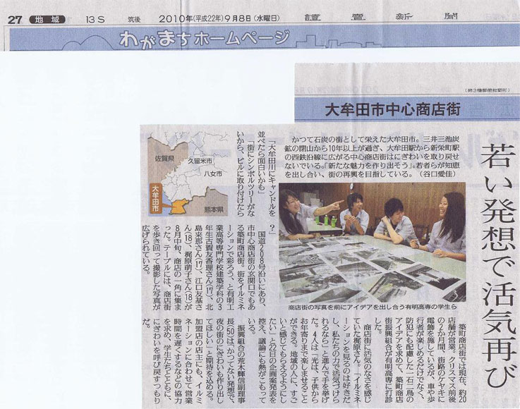 建築学科3年生有志4名が,大牟田の“冬の風物詩”となっている築町商店街のイ