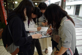以下,まち歩きの様子と,現地で行ったまとめ作業の様子です。また,新聞にも取り上げていただきました。ありがとうございました。