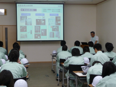 また,TOTO小倉第二工場では水周りの最新技術と,その製造工程,品質管理・安全管理の様子を直に見ることができ,学生は興味深そうに見学していました。