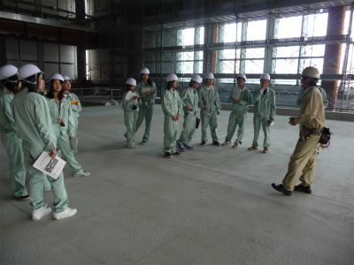 八幡製鐵所においては,小山高専を卒業された建築職の方が,敷地内で行われているプラント建設の現場を案内してくださり,とても貴重な体験させていただきました。高炉の建設ならではの苦労話や,プラント建設のおもしろさを伝えていただくことができました。