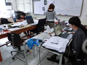 言葉が通じにくい環境の中でのチーム作業。毎晩,夜中まで続く作業や熱心な議論。しかしながら,学生にとっては,その一瞬一瞬が大切で充実した時間になったようです。