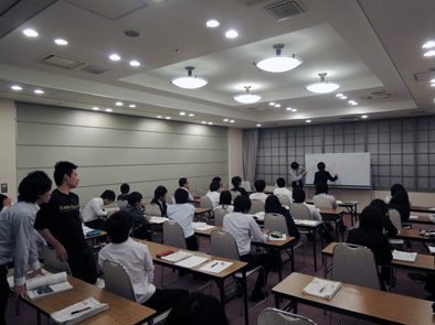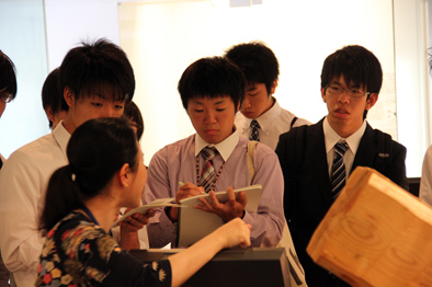 | 自主研修での集合写真(国立京都国際会館) | 竹中大工道具館での見学様子 |