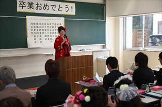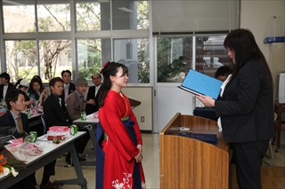 学科の会では卒業生,保護者,教職員が参加し,学科長から全員に卒業証書ならびに修了証書が授与されました.