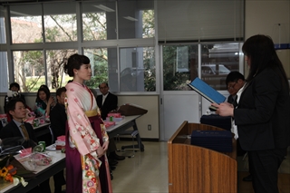 その後,学科長小野先生と建築学科同窓会 萩明会会長の祝辞を頂くととともに,