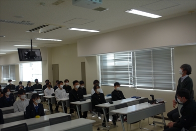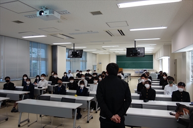 今年は昨年に続き,コロナ禍ということで,大教室にて,また,学生への事前のアンケートをプロジェクターで紹介する形で
