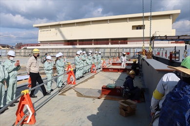 見学させていただいた建物は,令和6年竣工予定である大牟田市新総合体育館の新築工事で,鉄骨骨組の施工中の現場見学を行いました.