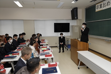本年度は人数を制限しながらも保護者の方にも式典会場に入って頂き,卒業式・修了式を行いました.