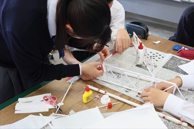 学生たちは複数回の製作・実験を行い,さらにその結果を振り返り,考察することで,どういう形,あるいは,工夫をした橋が強かったのか,学ぶことができたと思います.