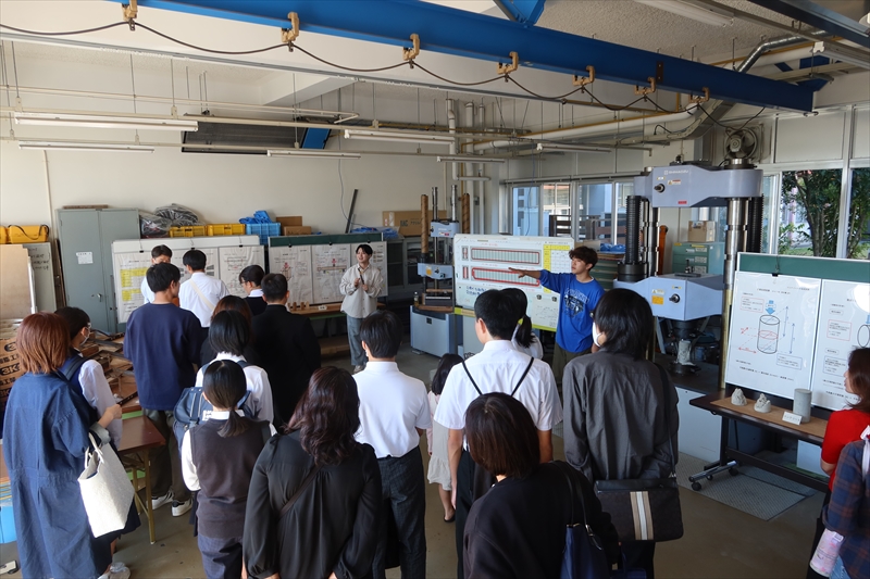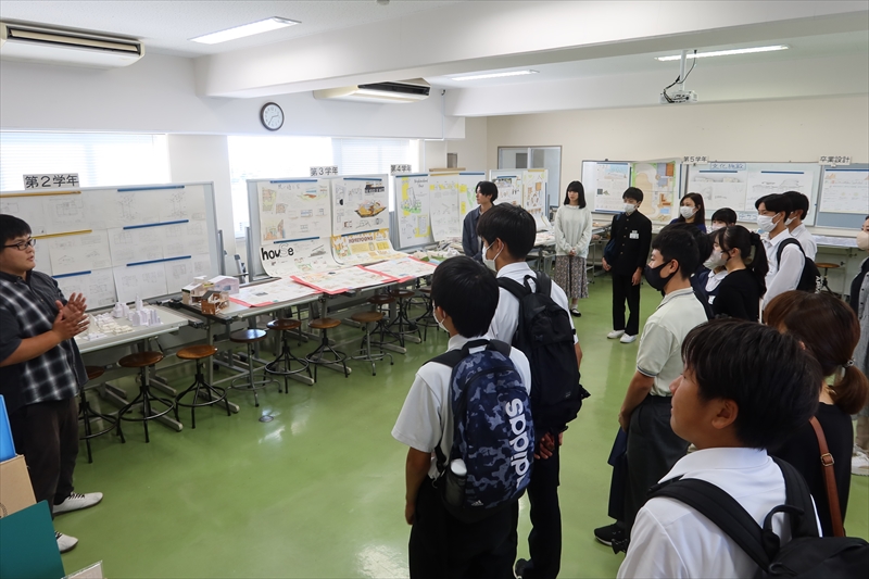 10月15日,本校にて本年度2回目のオープンキャンパスが開催されました. オープンキャンパスでは各専門コースの見学があり,建築コースでは,5年生が計画・環境系と構造・生産系に分かれて, 建築設計演習での課題・作品や環境工学,実験実習等の取り組みついて説明をしてくれました.
