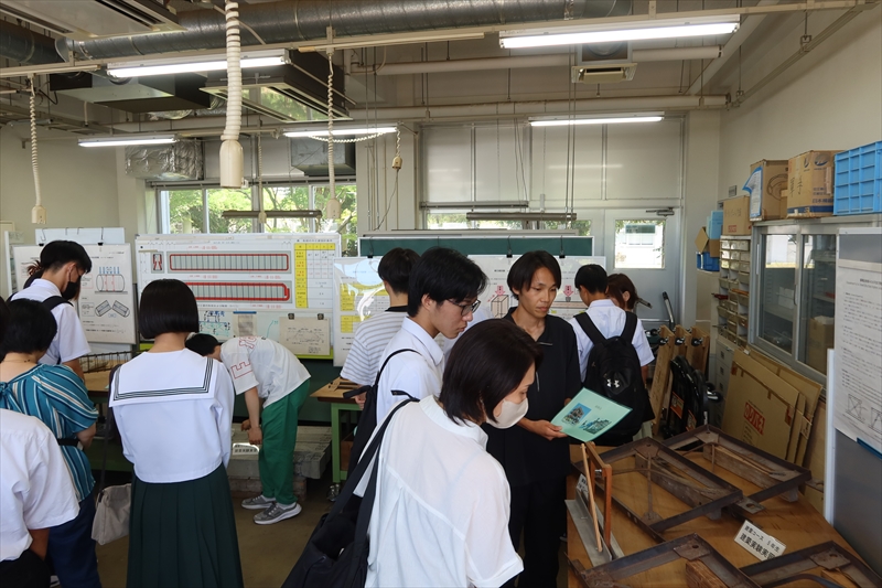 オープンキャンパスでは各専門コースの見学があり,建築コースでは,5年生が計画・環境系と構造・生産系に分かれて,