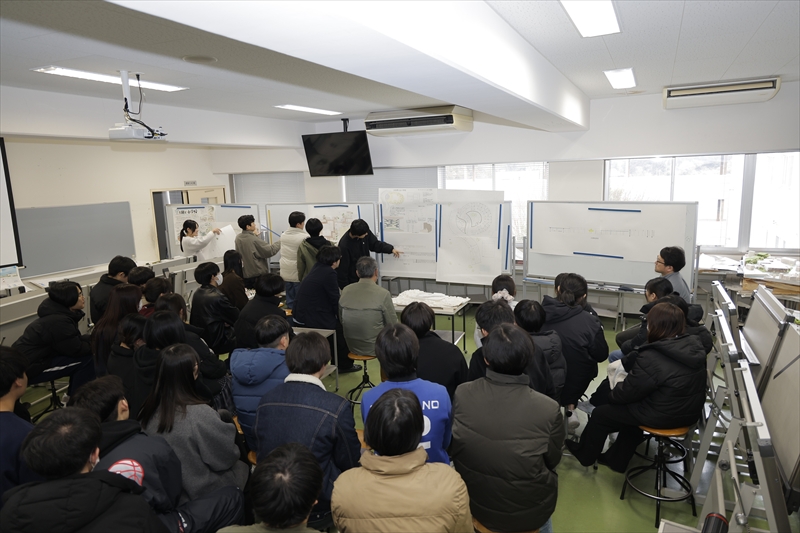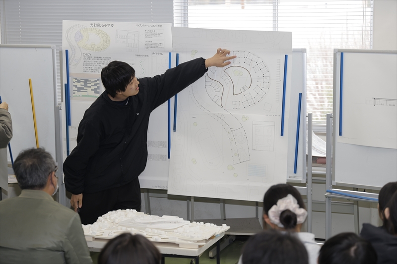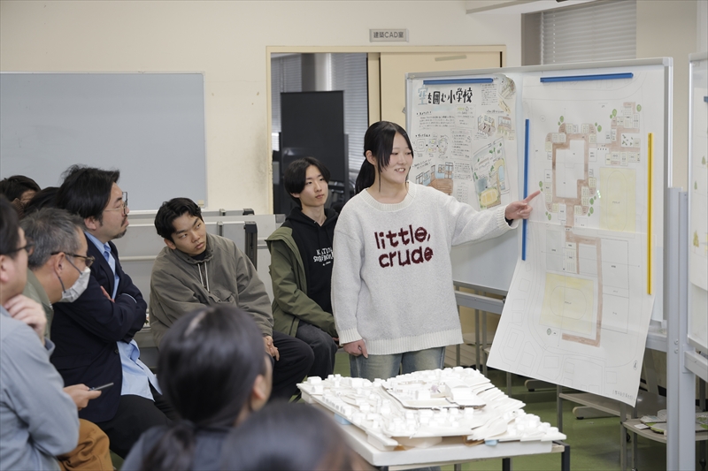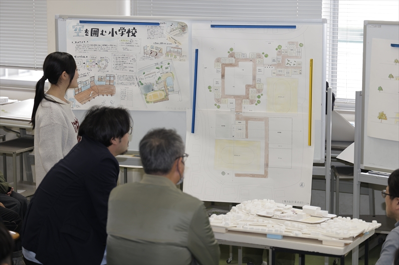 2026年2月16日(月),4年生が建築設計演習において小学校設計の発表会を行いました.