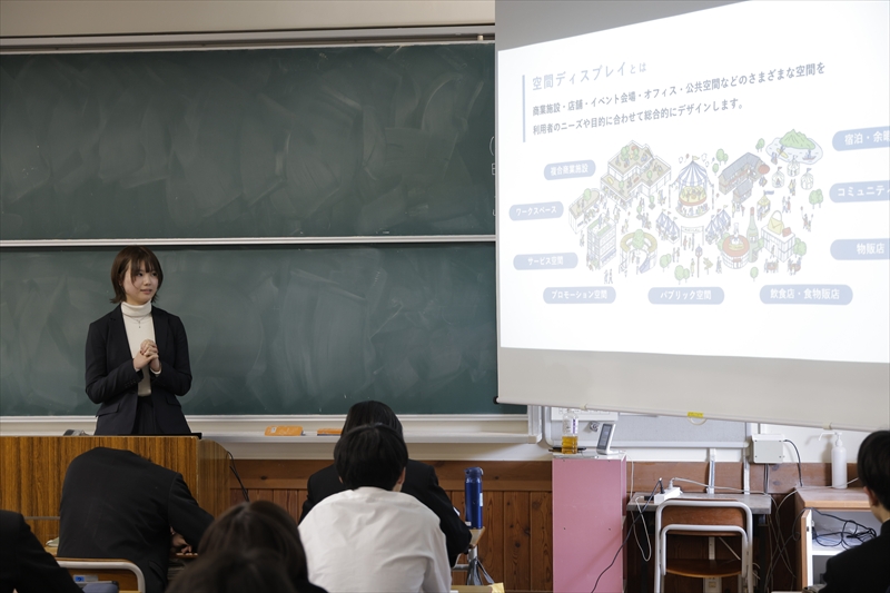 2026年2月17日(火),1年生の工学基礎Ⅱの授業で,建築コース卒業生の加賀田梨李香さんにお越しいただき,1年生全体にお話をしていただきました.